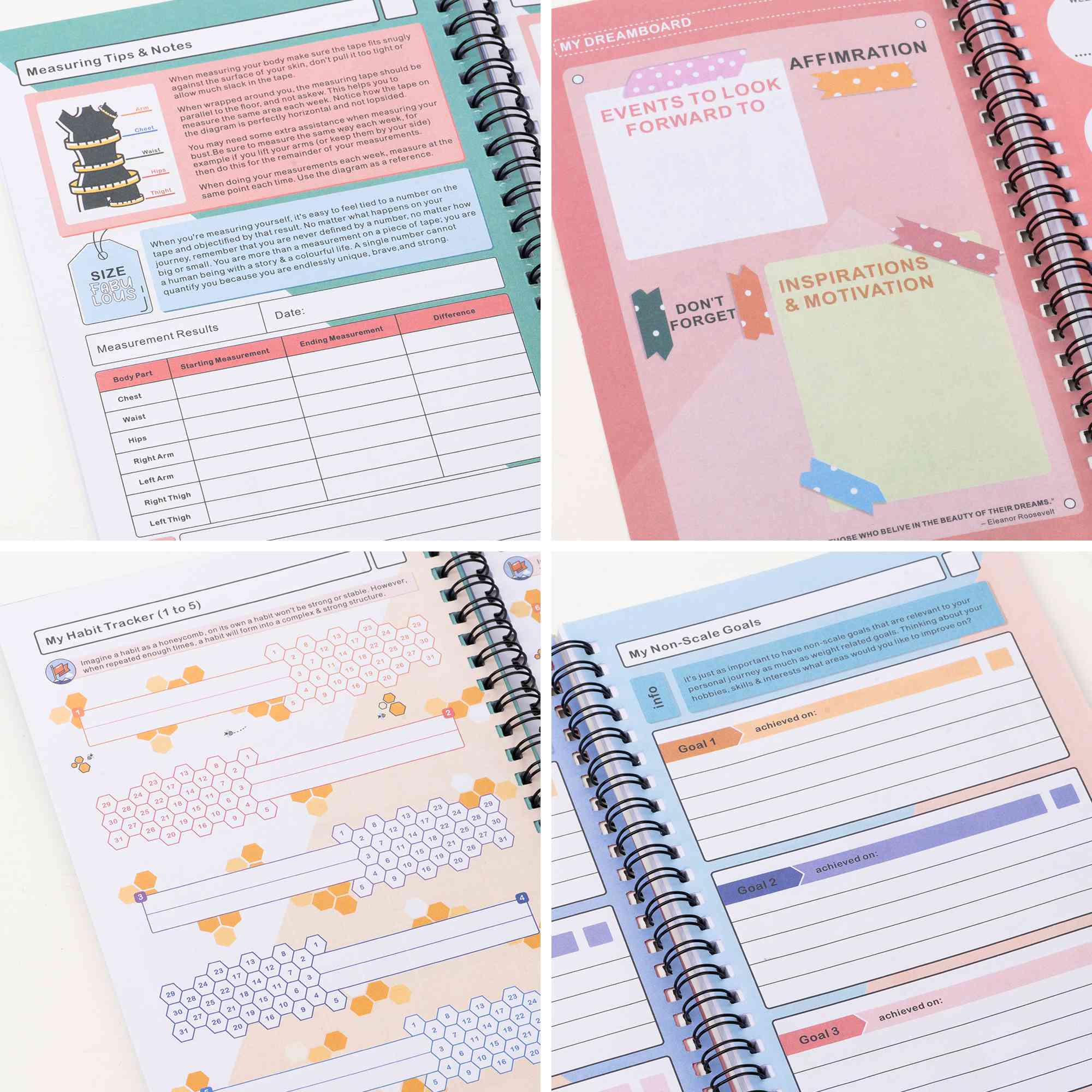Practical Features - Designed as an exercise progress journal, this A5 spiral notebook includes sections for workout tracking, meal planning, and motivational quotes. Its user-friendly layout helps fitness enthusiasts stay organized and inspired throughout their journey.