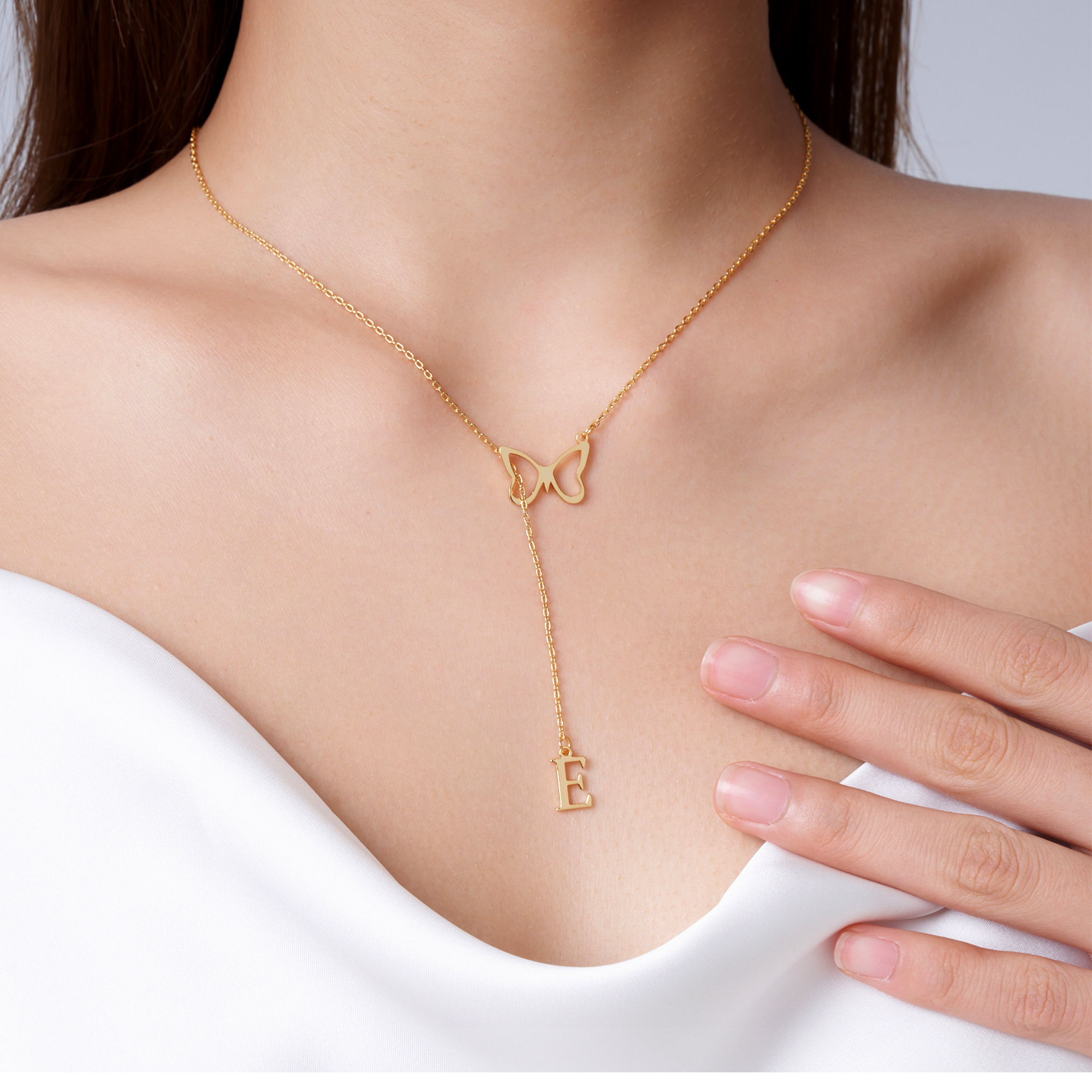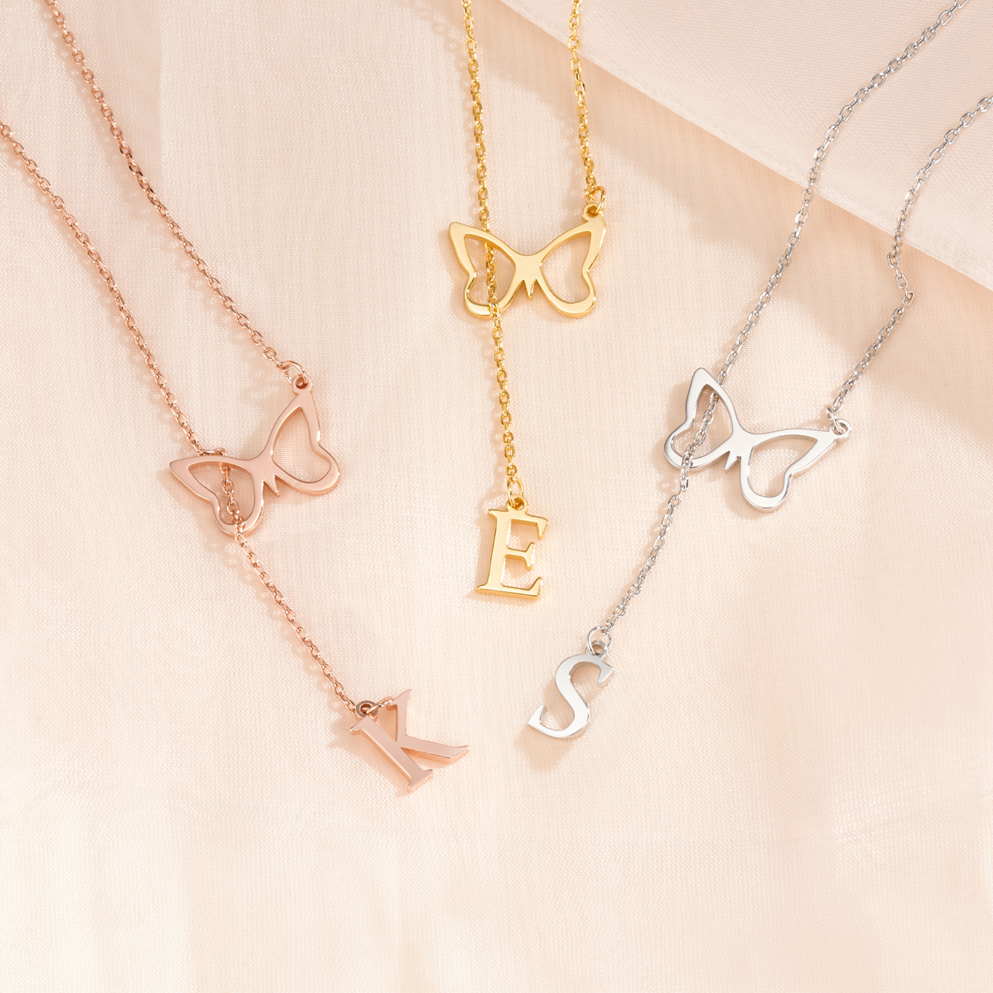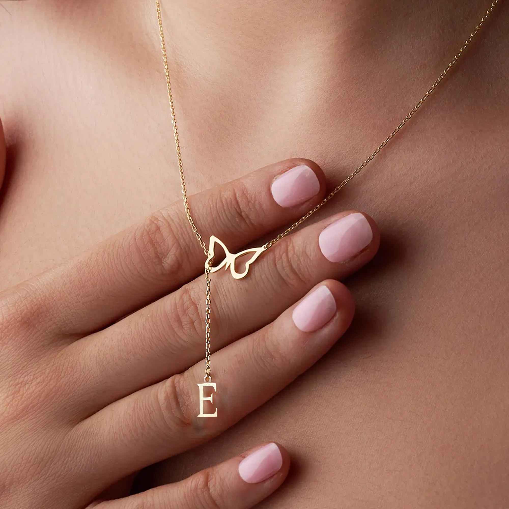 The Personalized Dainty Butterfly Initial Necklace is a beautiful and thoughtful gift for her! This custom letter pendant features an elegant butterfly design, symbolizing transformation and beauty, while allowing you to personalize it with an initial.