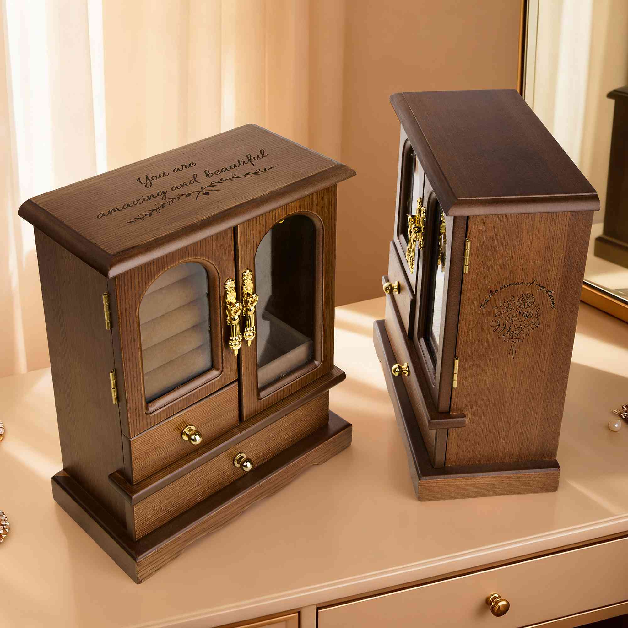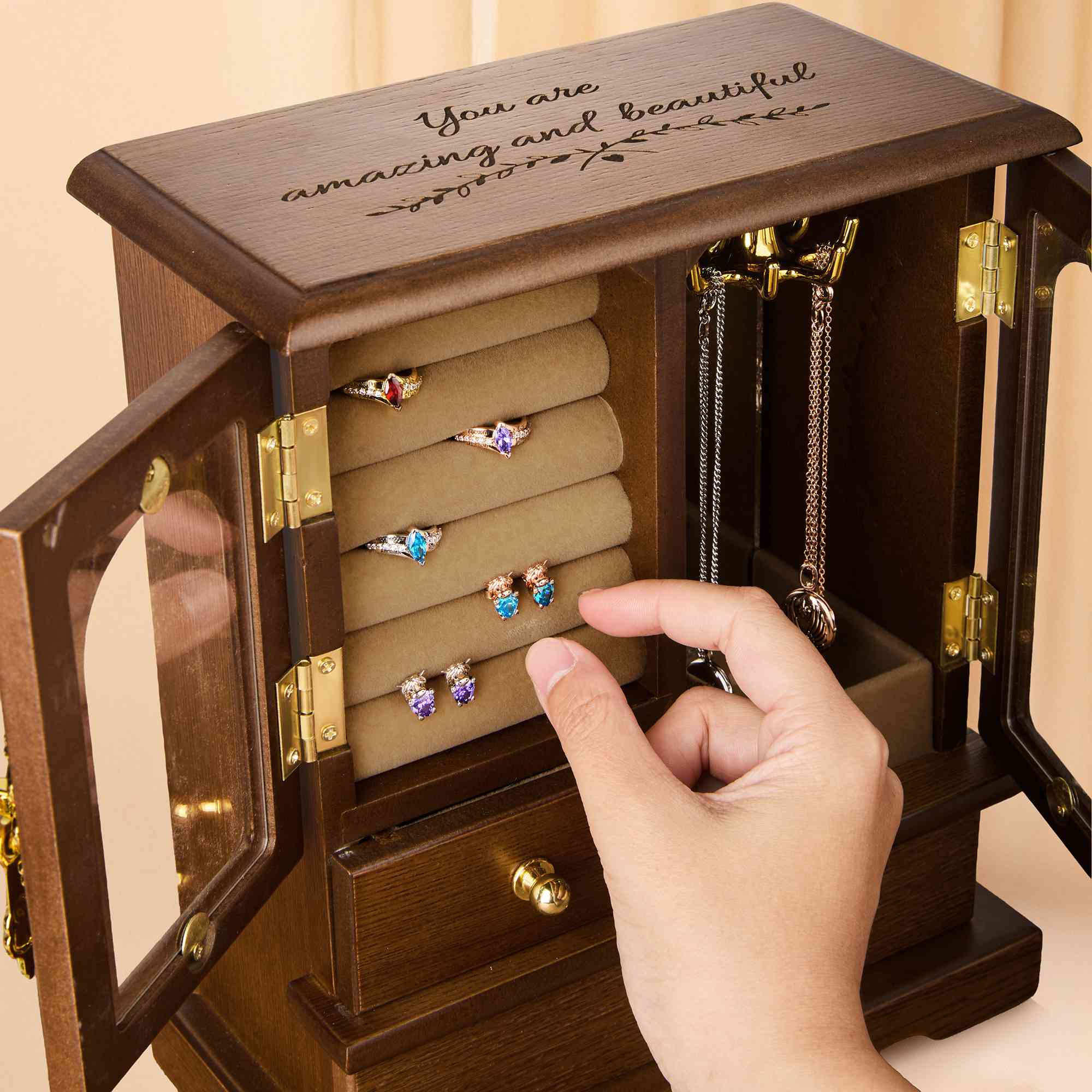 Personalized Walnut Jewelry Organizer Box, Engrave Jewelry Box, Wooden Jewelry Case, Wardrobe Jewelry Box, Christmas Gifts